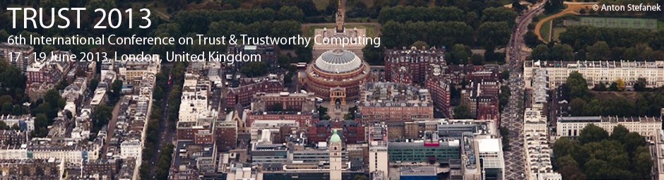 TRUST 2013 is hosted by Imperial College London, UK, supported by SBA Research, Austria and sponsored by Trusted Computing Group, Intel and Microsoft.